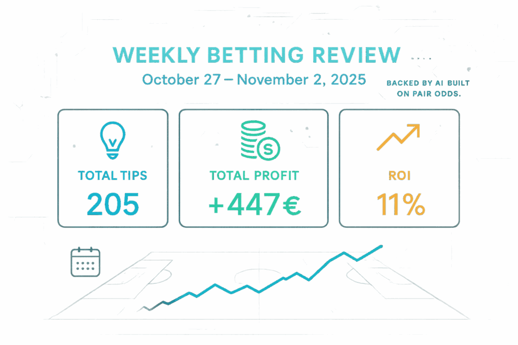 Dive into our weekly betting review where we analyze the results from tips generated between October 27 and November 2, 2025, highlighting our performance and overall outcomes.