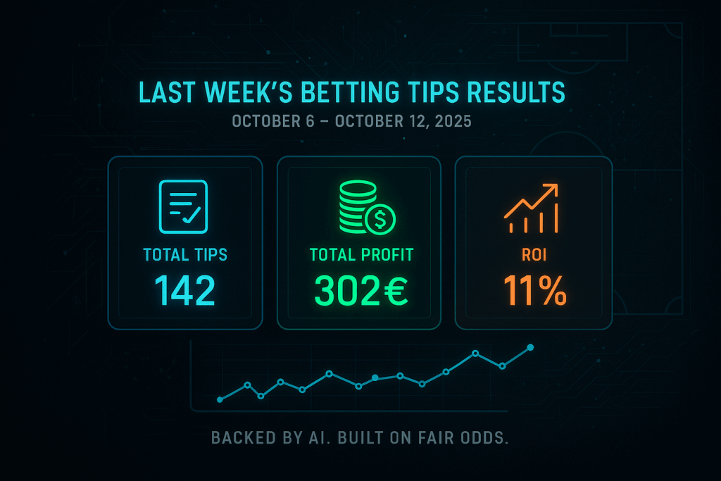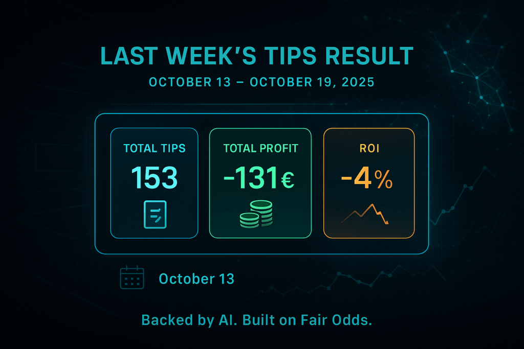 Explore the betting tips results from the week of October 13 – October 19, 2025, revealing insights into performance and ROI.