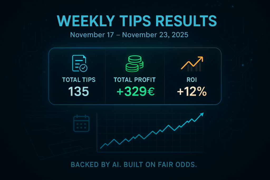 Discover the latest results of our weekly betting tips from November 17 to November 23, 2025, showcasing impressive profits and ROI.