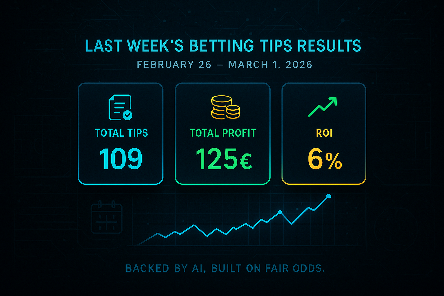 Our betting tips for the week of February 26 to March 1, 2026, featured a total of 109 tips. With a focus on delivering value and reliable outcomes, we are excited to share the results from this week.