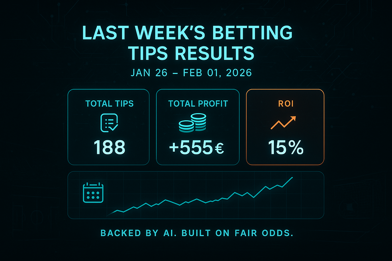 Discover how our latest betting tips performed over the week of Jan 26 - Feb 01, 2026, including profit and ROI insights.