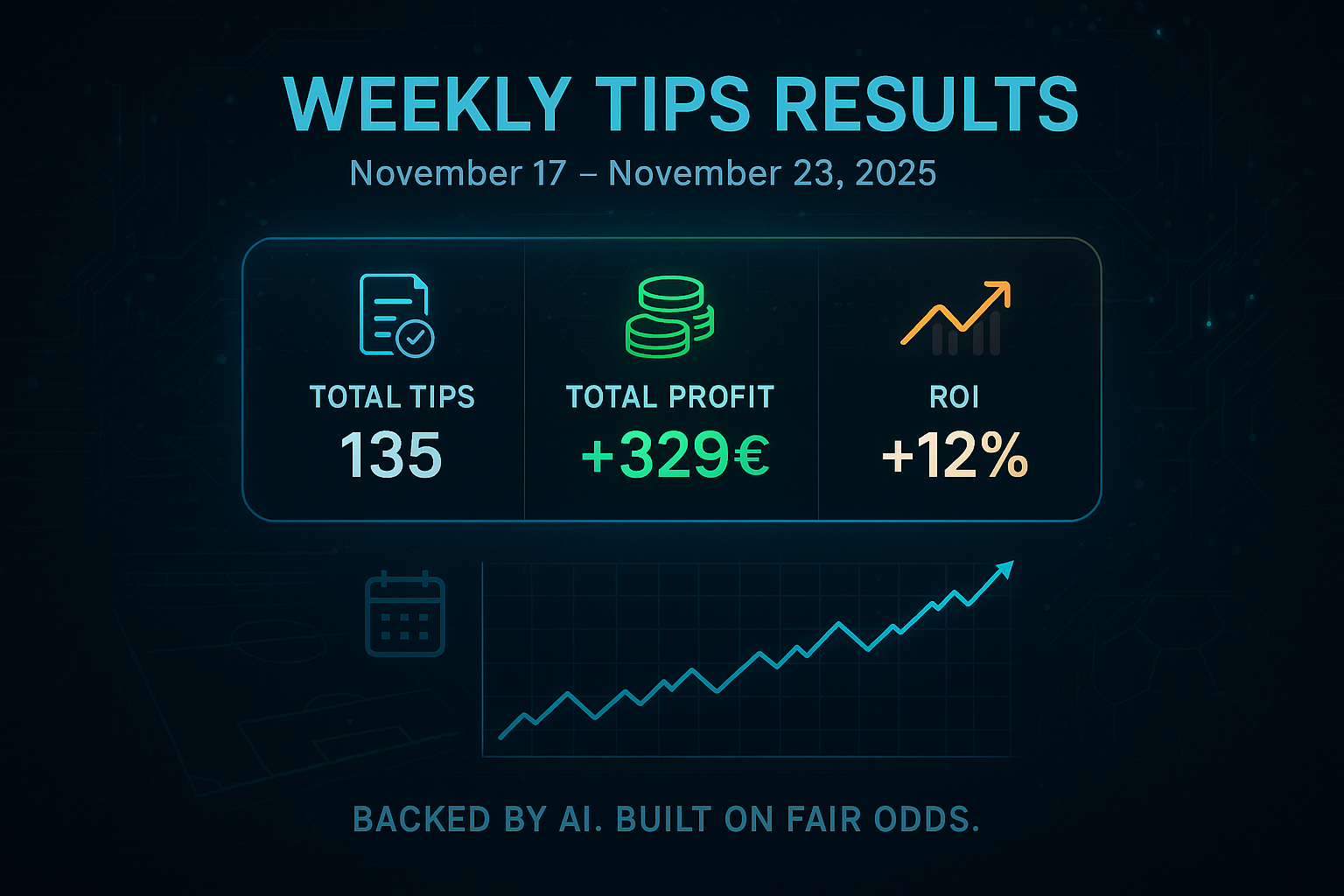 This week, we analyzed our betting tips from November 17 to November 23, 2025. With a total of 135 tips provided, our disciplined approach yielded a notable profit of 329€ and a solid ROI of 12%. Let’s dive deeper into the numbers and see how our predictions stood up against the betting markets.